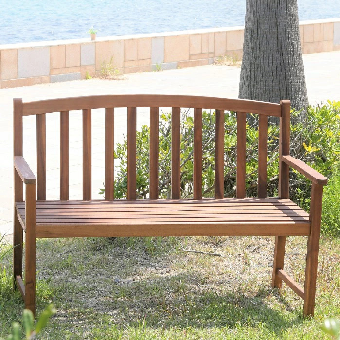 ■ベンチ 天然木 木製 ベンチチェア 背付き 肘付き チェア 2人用 チェア 椅子 腰掛 ガーデンエクステリア アウトドア 屋外 レジャー ブラ