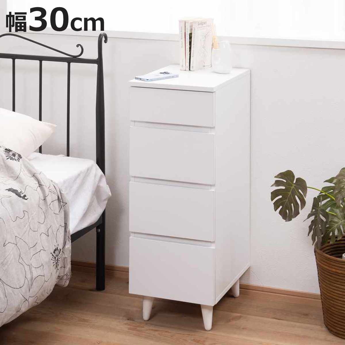 ■スリムチェスト 幅30cm 4段 ホワイトリビング ( チェスト 棚 ラック 収納 家具 ディスプレイ 引き出し 4杯 サイドボード サイドチェスト