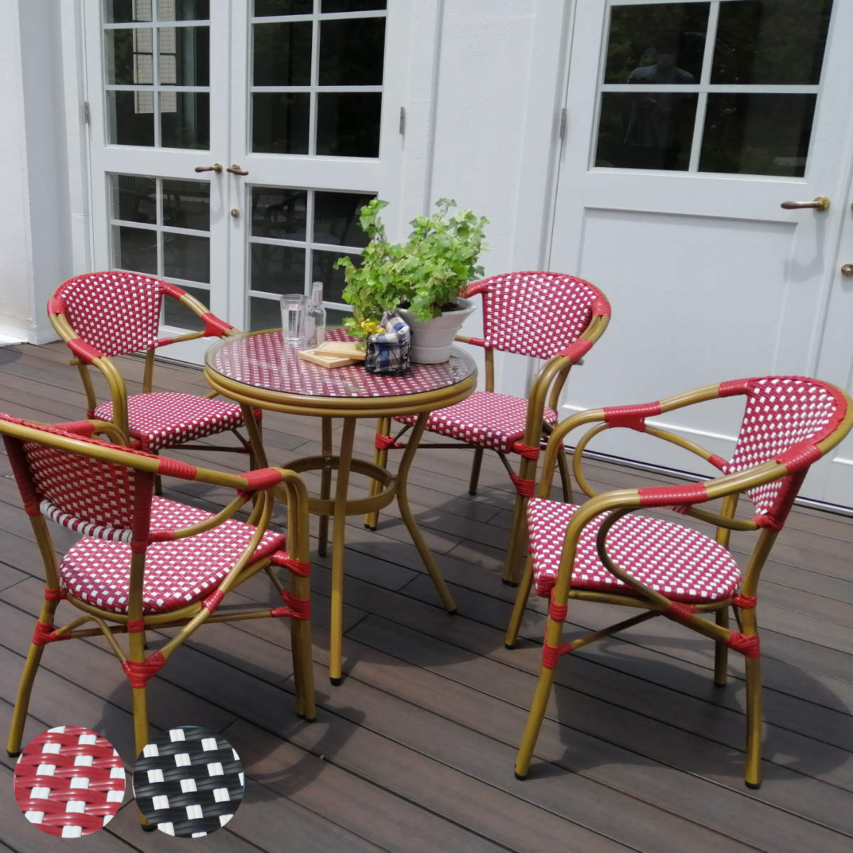 ■テーブル 5点セット プレジール ラウンド ( ガーデンテーブル ガーデン 庭 丸型 机 ガラス天板 ガラス 強化ガラス チェア セット モダン