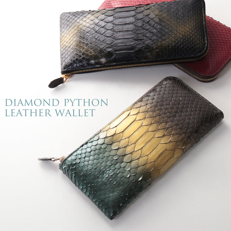 ■ダイヤモンド パイソン 長財布 メンズ L字 ファスナー 薄型 軽量【ネコポスで送料無料】 本革 蛇革 サイフ 誕生日 (06000049-mens-1r)