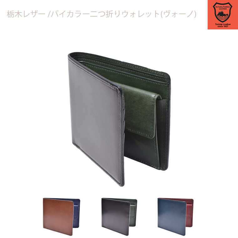 ■栃木レザー バイカラー 二つ折りウォレット 革 本革 レディース メンズ 男女兼用 レザー 牛革 cow ユニセックス 栃木レザー ウォレット