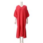 ・春夏にぴったりな軽やかで清涼感のあるマキシワンピース ・裾に向かって広がるシルエットが特徴です。羽織って着用してもフワリと裾が広がります。 ・胸元のVカットが顔まわりをスッキリ見せてくれます。 ・衿元の紐は結んだり垂らしたりアレンジ可能です。 ・同色のペチキャミソールがついています。おしゃれなワンピース コットン 100% 楊柳 ワンピース 購入