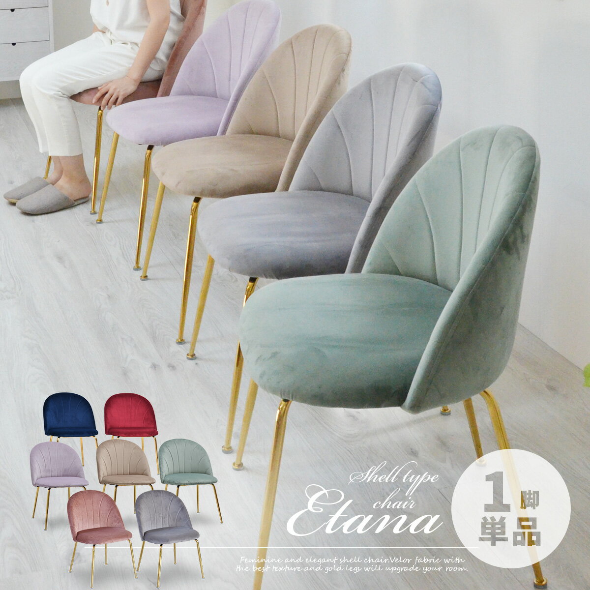 チェア おしゃれ ベロア 1脚 ETANA エタナシェルチェア くすみカラー かわいい カフェ いす 椅子 イス チェアー 食卓 北欧 フェミニン かわいい ドレッサー アンティーク ダイニングチェア 韓国インテリア 韓国 インテリア リビングチェア エタナ ピンク グレー 紫 緑 新生活