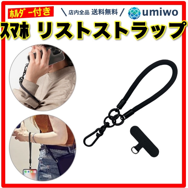 ■スマホ リストストラップ 太め 黒 ホルダーセット ハンドストラップ 落下防止 手首ストラップ シンプル 安全 デジカメ カメラ 丈夫 スト