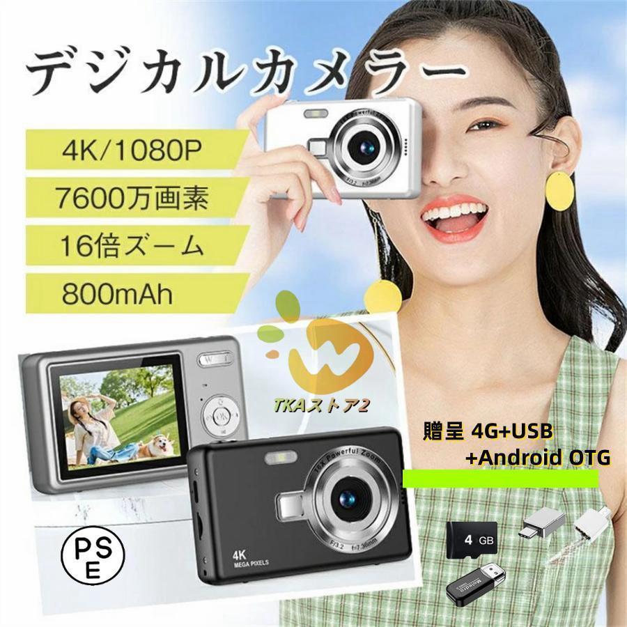 ■デジカメ デジタルカメラ 4K 7600万画素 16倍ズーム 高画質 オートフォーカス ウェブカメラ機能 手振れ補正 IPS大画面 高画質 携帯便利