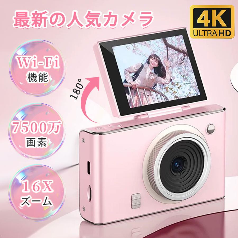 【2025大人気】デジカメ デジタルカメラ 4k 7500万画素 16倍ズーム 180°反転 WIFI対応 自撮り 手プレ補正 動画撮影 小型 Vlogカメラ 軽量 修学旅行 初心者 新品