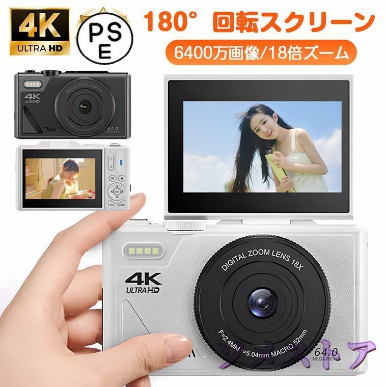 ■デジタルカメラ デジカメ 6400万画素 4K動画撮影 WIFI対応 自撮り スマホ転送 180°回転スクリーン 18倍ズーム 3インチ AF機能 手ブレ補