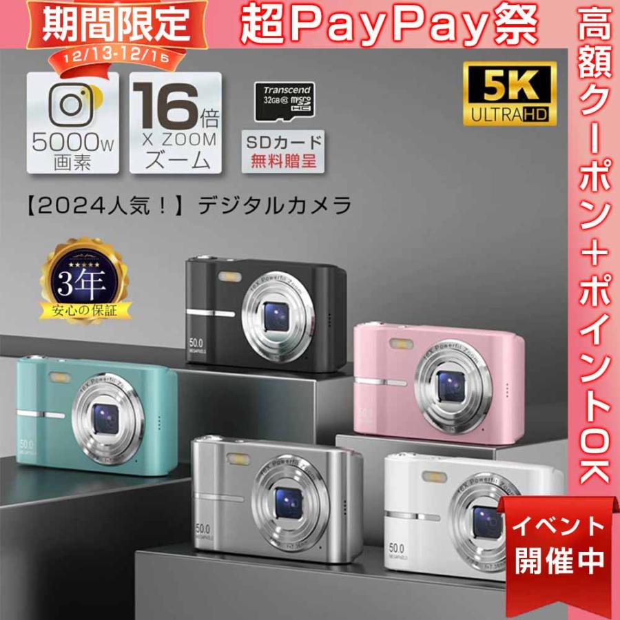 ■デジカメ デジタルカメラ 5K 5000万画素 16倍ズーム 高画質 オートフォーカス ウェブカメラ機能 手振れ補正 IPS大画面 防塵 軽量 修学 旅