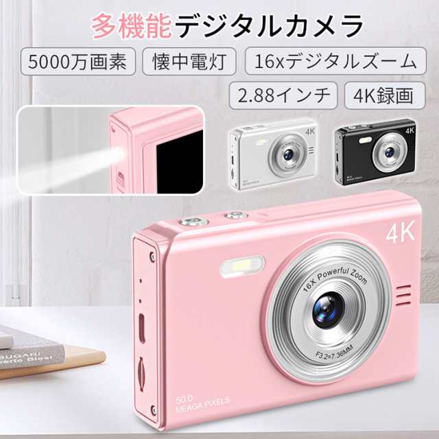 デジカメ デジタルカメラ 4K 4800万画素 16倍ズーム 高画質 オートフォーカス ウェブカメラ機能 広角レンズ 121g 手振れ軽減 防塵 軽量 初心者 新品