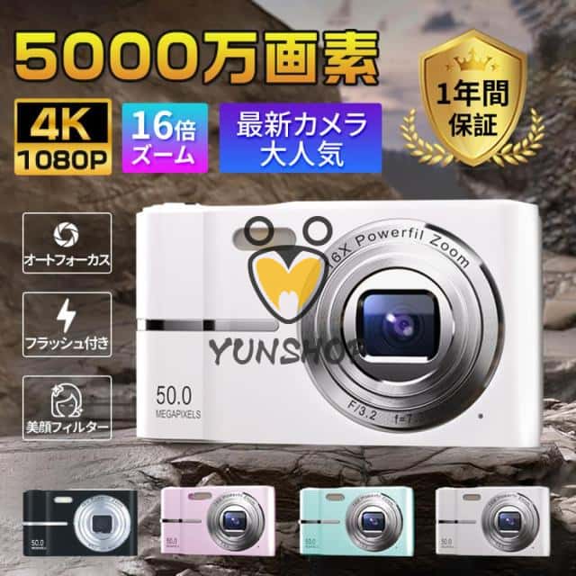 ■デジカメ 4K デジタルカメラ 日本製チップ 128GB SDカード付き 16倍ズーム 5000万画素 オートフォーカス ウェブカメラ コンパクト 初心者
