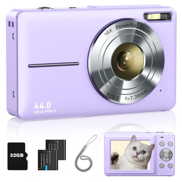 ■【送料無料】Lecran デジタルカメラ デジカメ 4400万画素 1080P動画撮影 オートフォーカス AF機能 HDカメラ 手ブレ補正