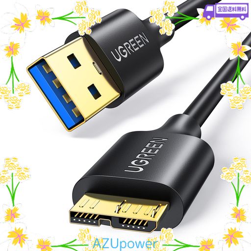 ■UGREEN USB3.0 MICROB USBケーブル タイプAオス - マイクロタイプBオス 高速転送と急速充電 外付けHDD SSD BLU-RAY BDドライブ デジカメ