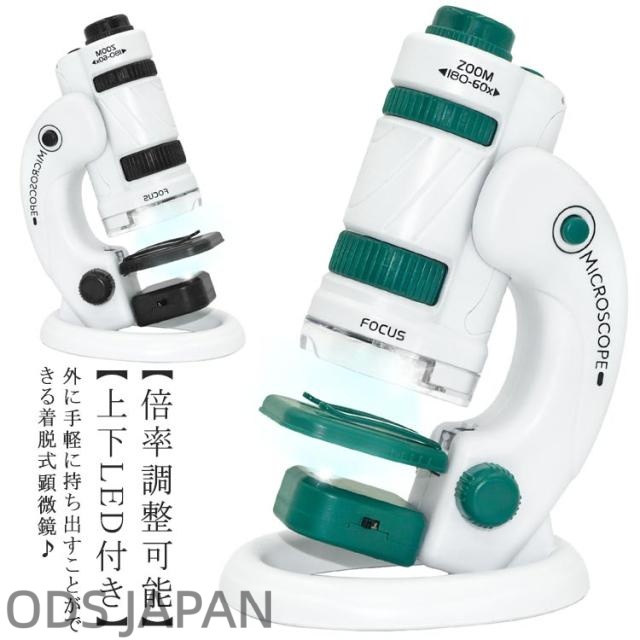 ■顕微鏡 子供用 ミニ顕微鏡セット ハンディ顕微鏡 ポータブル顕微鏡 60?180倍 台座着脱可能 子供用 人気 小型 おでかけ顕微鏡 スマホ撮影
