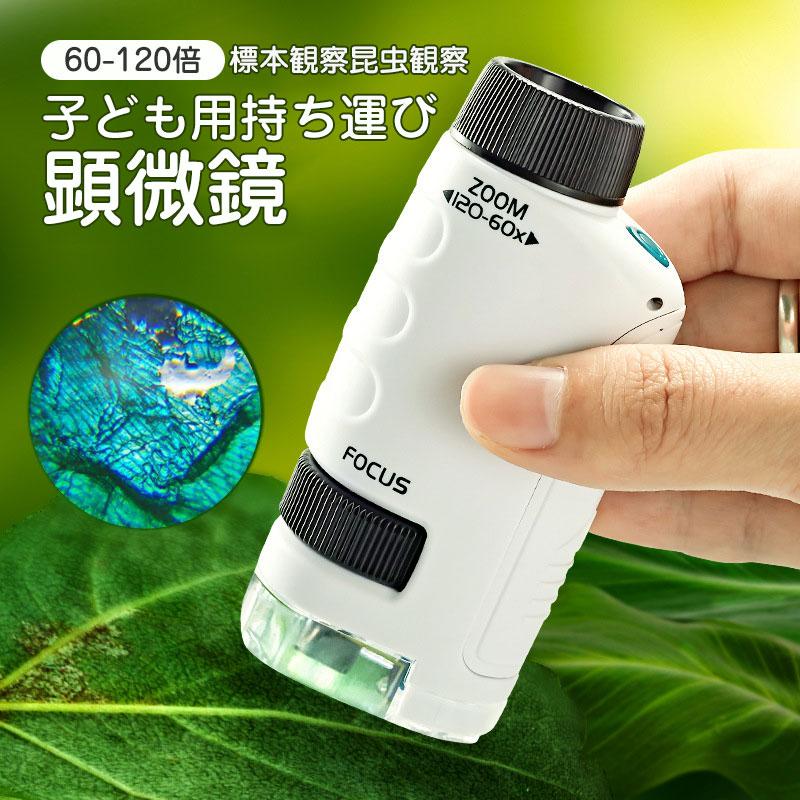 顕微鏡 ハンディ顕微鏡 60?120倍 小学生 自由研究 野外観察 趣味 LEDライト内蔵 けんびきょう コンパクト 観察 送料無料