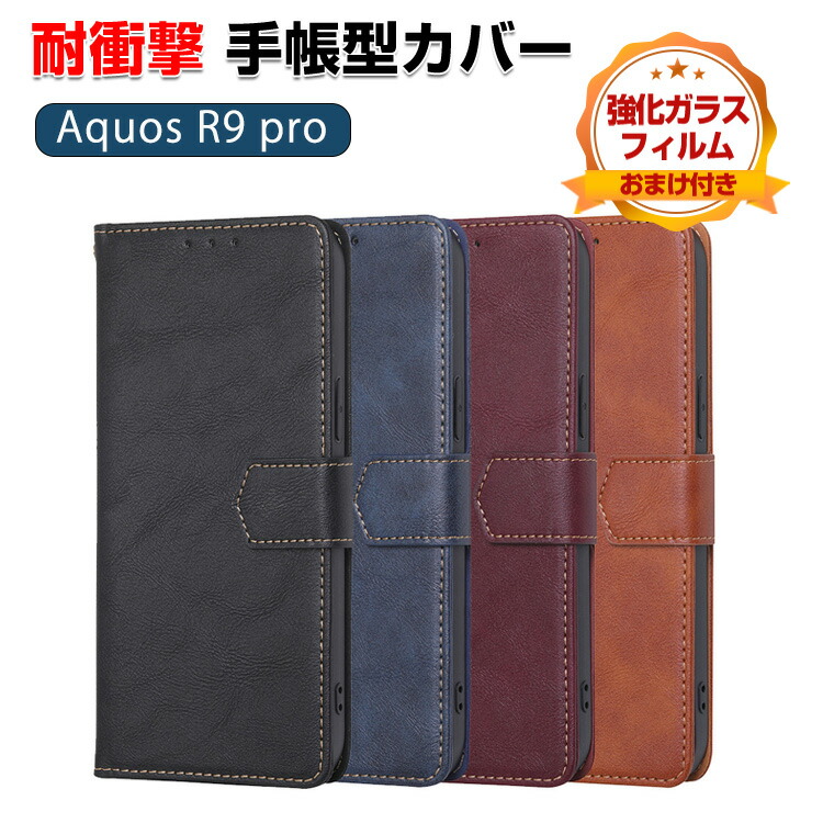 シャープ アクオス R9 プロ SHARP AQUOS R9 Pro SH-54E ケース カバー 手帳型 財布型 PUレザー おしゃれ CASE 汚れ防止 スタンド機能 カード収納 ブック型 カッコいい 耐衝撃カバー 人気 手帳型カバー 強化ガラスフィルム おまけ付き