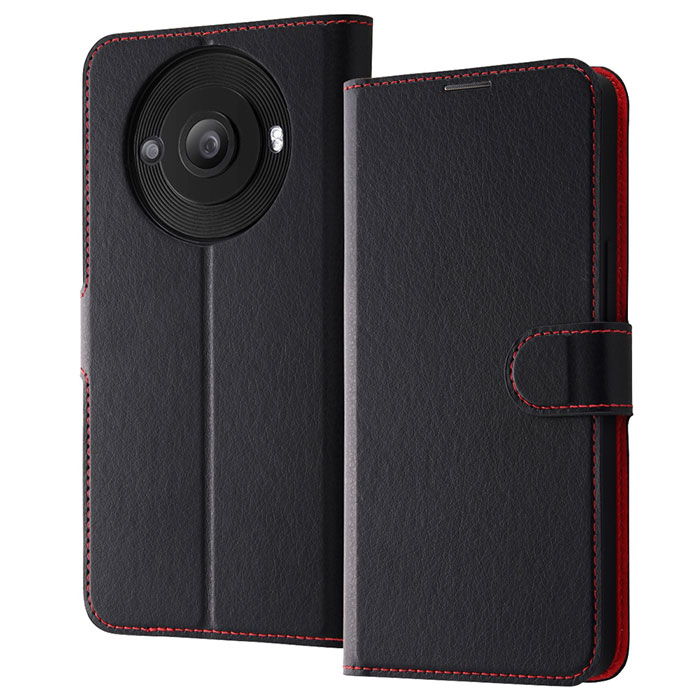 ■AQUOS R8 pro SH-51D A301SH ケース 手帳型 耐衝撃 シンプル マグネット ブラック レッド カバー シャープ アクオス アールエイトプロ ス