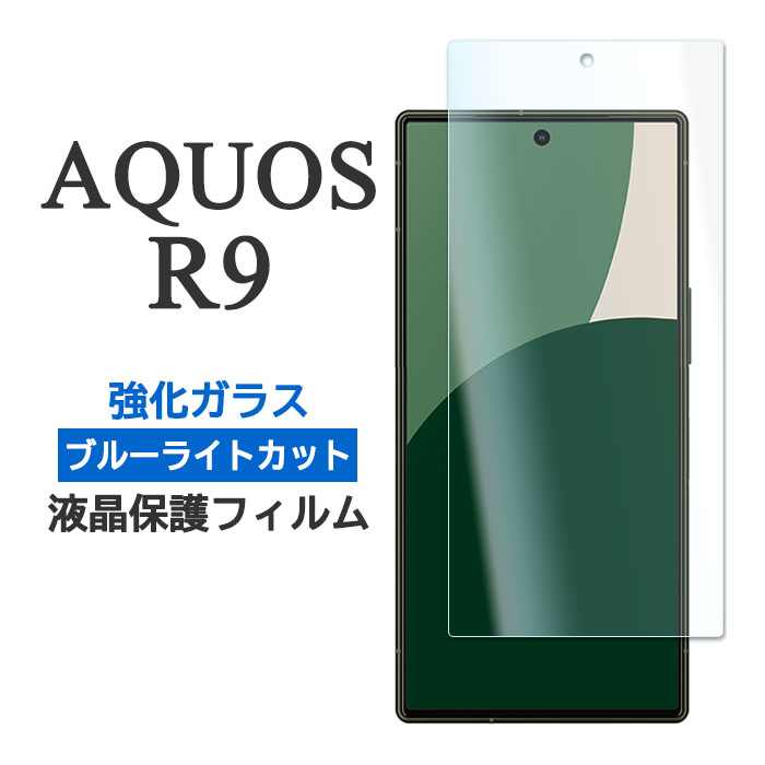 ■AQUOS R9 フィルム SH-51E A401SH 液晶保護 ブルーライトカット 9H 強化ガラス カバー アクオスr9 画面保護 シャープ アクオス アールナ