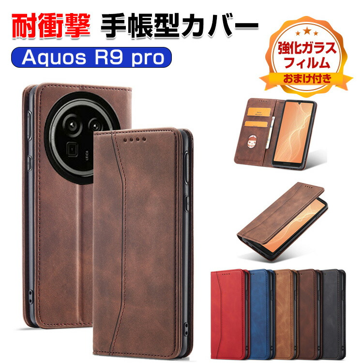 シャープ アクオス R9 プロ SHARP AQUOS R9 Pro SH-54E ケース カバー 手帳型 財布型 PUレザー おしゃれ CASE 汚れ防止 スタンド機能 カード収納 ブック型 カッコいい 耐衝撃カバー 人気 手帳型カバー 強化ガラスフィルム おまけ付き