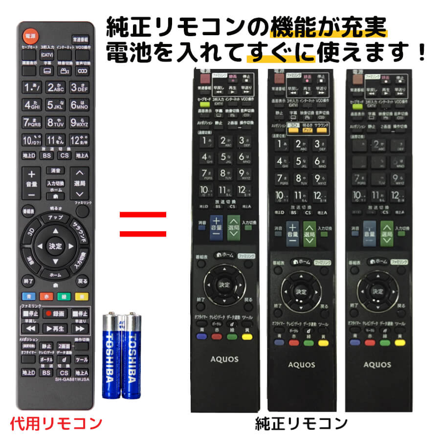 ■シャープ アクオス テレビ リモコン 電池付き GA912WJSA GA881WJSA GA888WJSA AQUOS SHARP AQUOS 代用リモコン