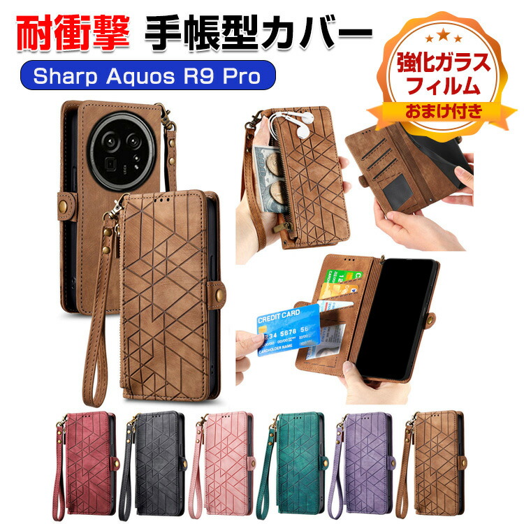 シャープ アクオス R9 プロ SHARP AQUOS R9 Pro SH-54E ケース カバー 手帳型 財布型 PUレザー おしゃれ CASE 汚れ防止 スタンド機能 ストラップ付き リストバンド付き カード収納 ブック型 カッコいい 耐衝撃カバー 人気 手帳型カバー 強化ガラスフィルム おまけ付き