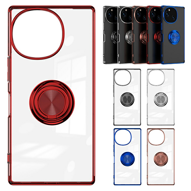 ■SHARP AQUOS R9 クリアケース SH-51E カバー クリア メッキ 透明 TPU 一体型リング付き シンプル 背面ケース シャープ アクオス R9 ソフ