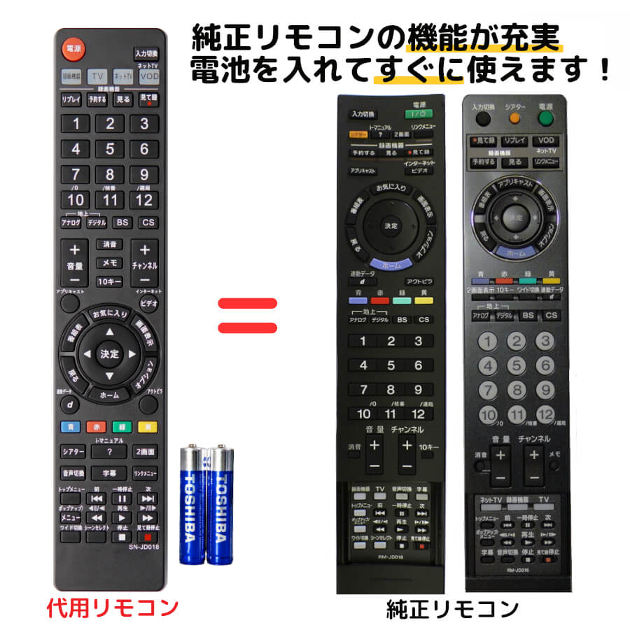 ■ソニー ブラビア テレビ リモコン 電池付き RM-JD010 RM-JD011 RM-JD013 RM-JD016 RM-JD017 RM-JD018 RM-JD019 RMF-JD006 SONY 代用リモ