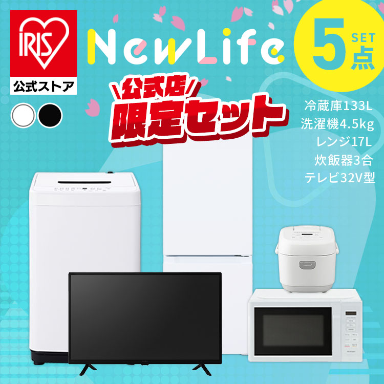 ■家電セット 5点セット 冷蔵庫 133L 洗濯機 5kg 電子レンジ 炊飯器 3合 液晶テレビ テレビ アイリスオーヤマ 新生活 安心延長保証対象