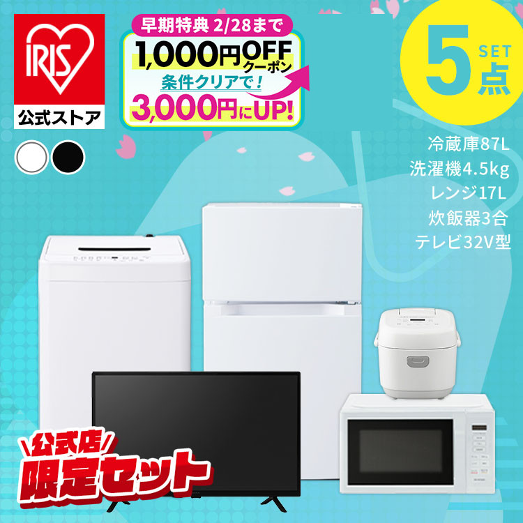 ■家電セット 5点セット 冷蔵庫 87L 洗濯機 5kg 電子レンジ 炊飯器 3合 液晶テレビ テレビ アイリスオーヤマ 新生活 安心延長保証対象