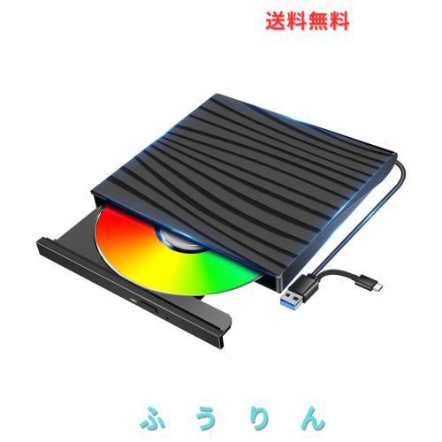 ■外付けDVDドライブ CD DVDドライブ USB3.0&Type-C両用ケーブル 読取/書込可 静音 DVDプレーヤー 外付けDVD/CDドライブ バスパワー駆動