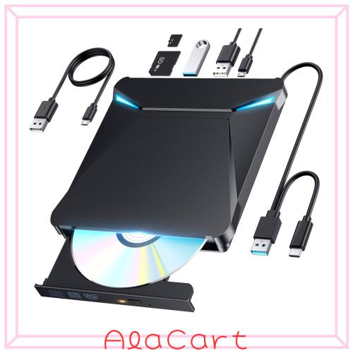 ■DVDドライブ 外付け 『2025革新高速版・1台多役』 外付けdvdドライブ 光学式 cdドライブ 外付け USB3.0&Type-C両接続 dvdプレーヤー 読