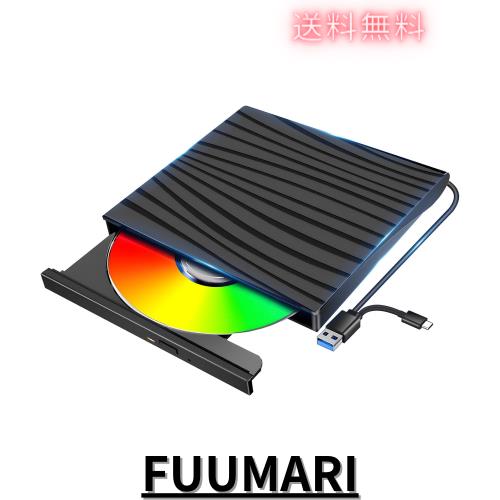 ■外付けDVDドライブ CD DVDドライブ USB3.0&Type-C両用ケーブル 読取/書込可 静音 DVDプレーヤー 外付けDVD/CDドライブ バスパワー駆動