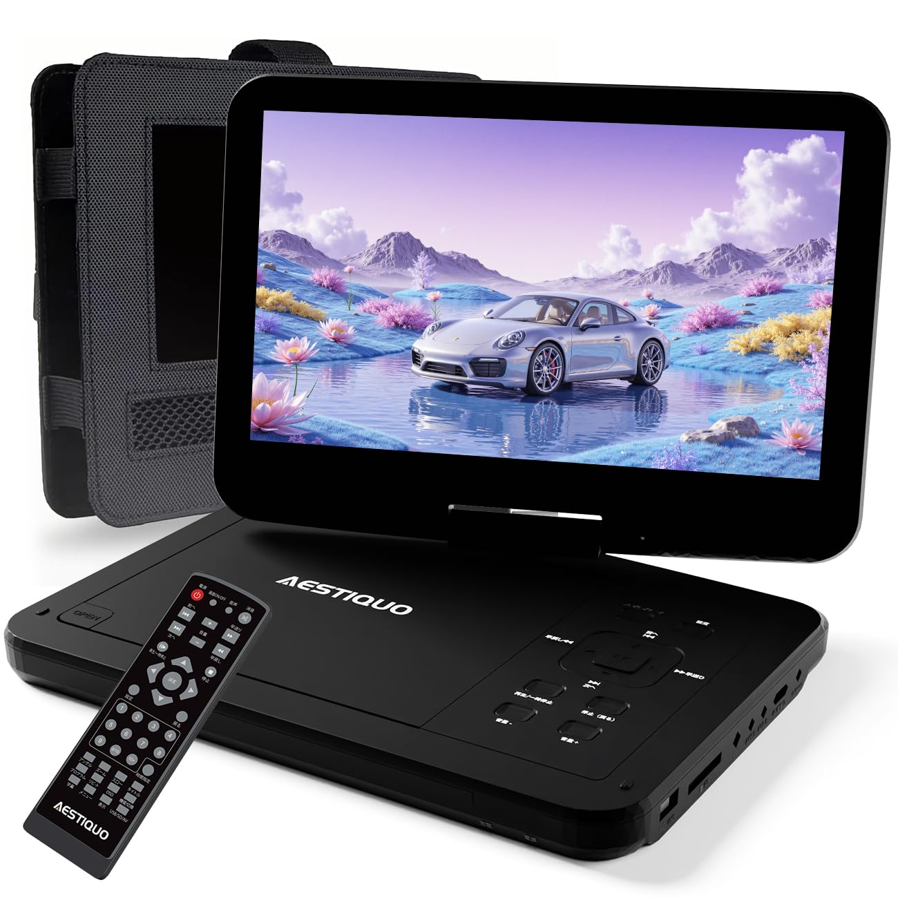 ■【2025年新機種】AESTIQUO ポータブルD V Dプレーヤー 12.5型 dvdプレーヤー 10.5インチ液晶 車載用ホルダー付 5時間連続再生 リージョン