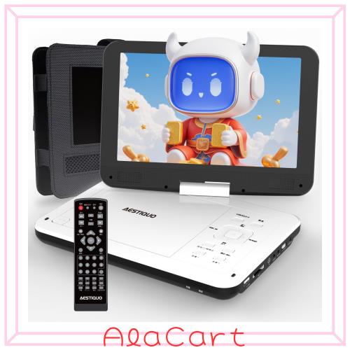 ■AESTIQUO ポータブルDVDプレーヤー 12.5型 dvdプレーヤー 10.5インチ液晶 cdプレーヤー【車載用ホルダー&リモコン&リモコン用電池付 】