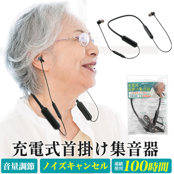 ■集音器 連続使用約100時間 首掛け式 ノイズキャンル付き 充電式 軽い 軽量 両耳式 耳が遠い 高齢者 年配者 プレセント テレビ 会話が聴き