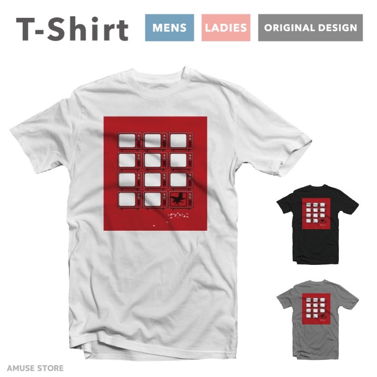 ■Tシャツ レディース 半袖 おしゃれ プリント ブラック ホワイト グレー TV テレビ 正方形 POP