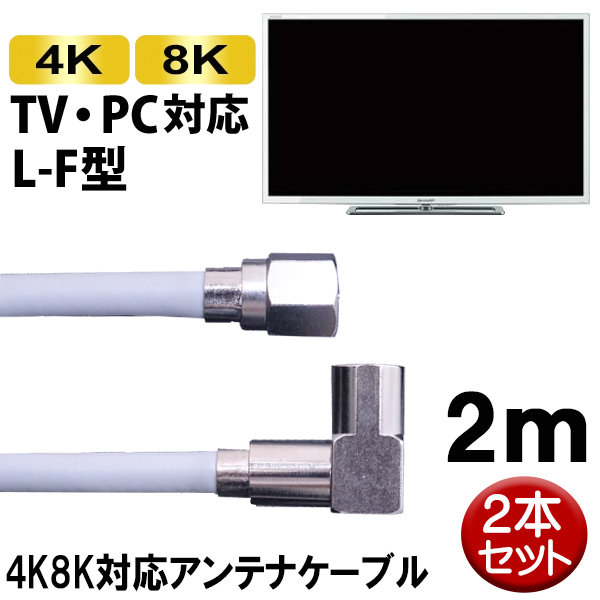 ■アンテナケーブル 4K8K対応 2m 2本 S4CFB 同軸ケーブル テレビ 地デジ BS CS対応 ライトグレー 高品質設計 日本メーカー製 SED S4LF-2H-2