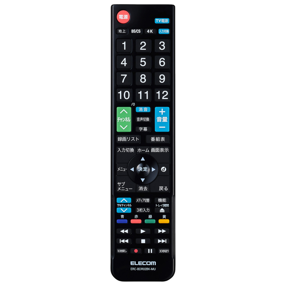 ■エレコム ERC-BDR02BK-MU マルチレコーダーリモコン[レコーダー4社 /テレビ12社]ELECOM[ERCBDR02BKMU] 返品種別A