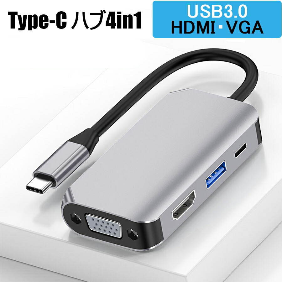 ■USB Type-C HDMI VGA 変換アダプター ハブ 4in1 USB3.0 PD 60W 急速充電 高速データ スマホ テレビ ミラーリング モニター出力 hdmi ハブ