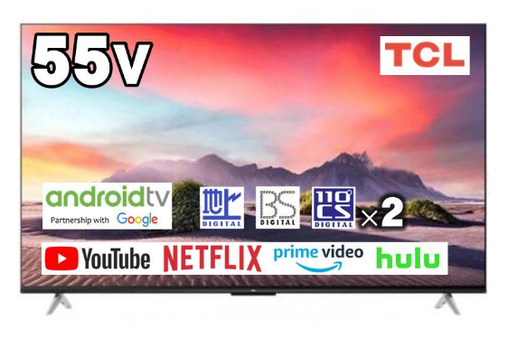 ■テレビ 55V型 TCL 55JP61 4K対応スマートテレビ 地デジ/BS/CS クロームキャスト Wチューナー Wi-Fi内蔵 HDMI:3 USB:1(保証あり:美品)