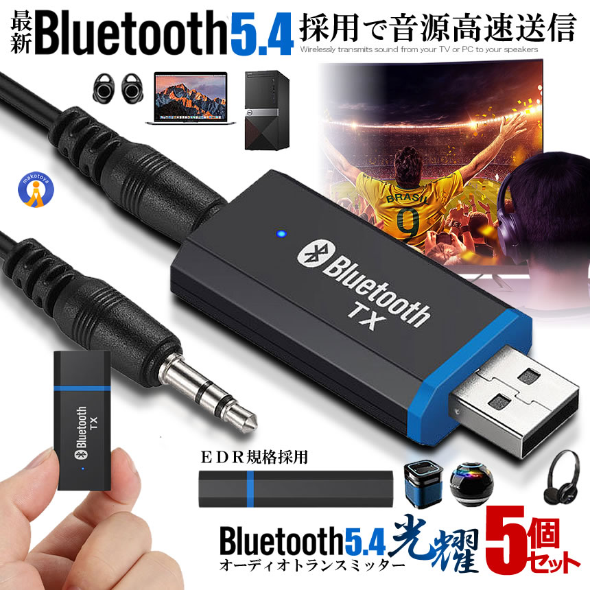 ■5個セット Bluetooth 5.0 オーディオ USBトランスミッター EDR 送信機 高速 音声 アダプタ テレビ スピーカー BLUPC