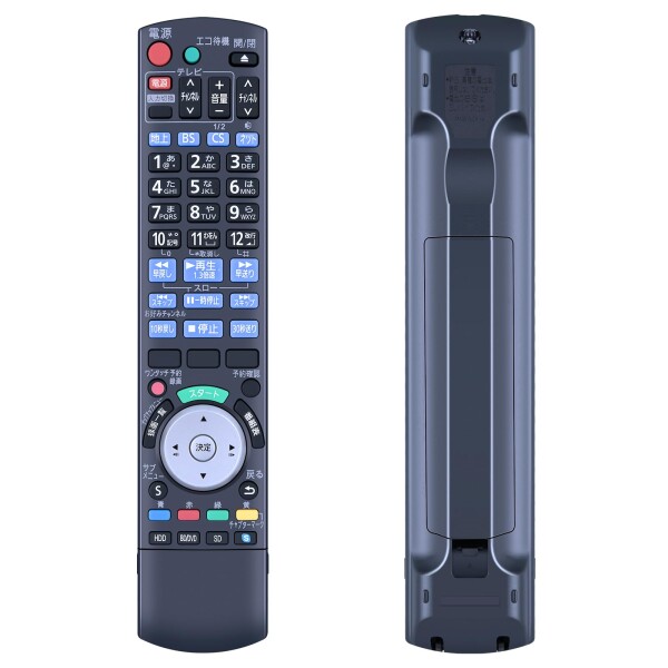 ・パナソニック用の「代用リモコン」です。 ・純正リモコンと同機能のボタンが設置されており、主な機能は全て使用できます ※テレビ、レコーダー側に機能がない場合やリモコンにボタンとして設置されていない機能は操作ができかねます。 ・設定は不要です。 -リモコンモードを変更されている方は説明書をご参照ください。 -無線方式へ変更されている方は赤外線方式への変更が必要となります。 ・汎用リモコン、マルチリモコンでは使えない機能もご使用いただけます。 ・電池は別売りです 対応リモコン:レコーダー型番 N2QAYB001182 DMR-BRX2050 DMR-BX2050 DMR-2CX200 DMR-2X200 DMR-BCX2060 DMR-BRX2060 N2QAYB001171 DMR-BRT530 DMR-BW1050 DMR-BW550 DMR-BRW550 DMR-BRW1050 N2QAYB001172 DMR-BRT1030 N2QAYB001173 DMR-UBZ1030 DMR-UBZ2030 N2QAYB0010