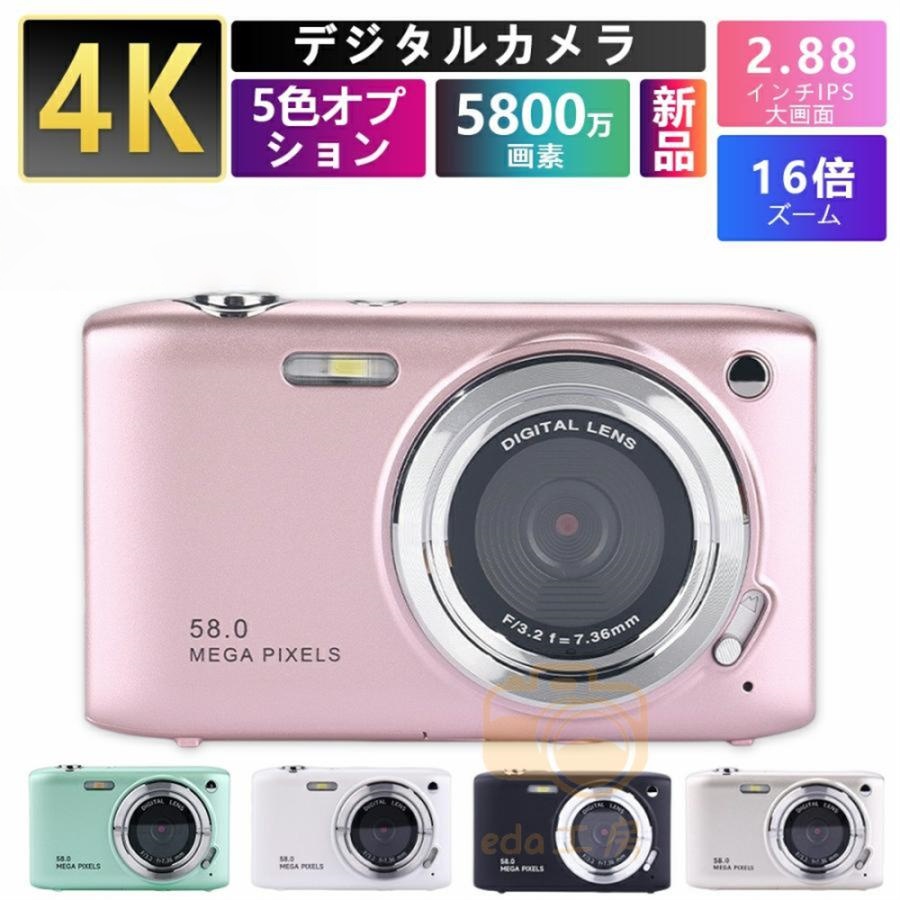 ■デジタルカメラ ビデオカメラ 5800万画素 4K DVビデオカメラ おすすめ 小型 カメラ 2.88インチ 16倍デジタルズーム オートフォーカス ポ