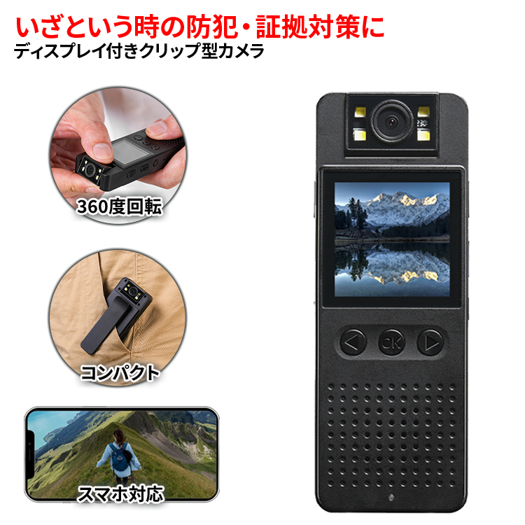■小型カメラ 高画質 スマホ連動 wifi 長時間録画 遠隔操作 バッテリー内蔵 クリップ iPhone android アクションカメラ ビデオカメラ 防犯