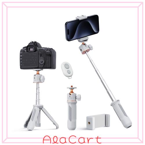 ■K&F Concept カメラスマホ三脚 スマホホルダー付き 自撮り棒 三脚 ミニ三脚 5段伸縮 卓上 安定 ビデオカメラ ホットシュー付き 360°回