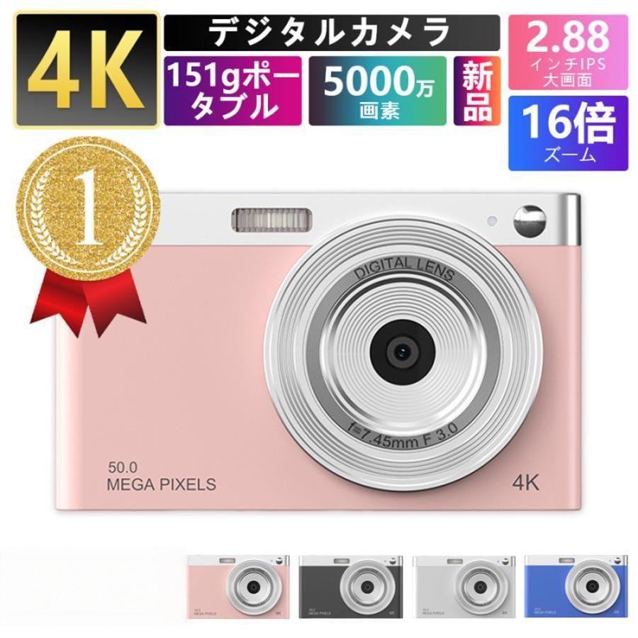 ■デジタルカメラ 4K 16倍ズーム 5000万画素 ビデオカメラ キッズカメラ 安い 軽量 2.88インチ 初心者 子供 向け ポケット 自撮り 動画 撮