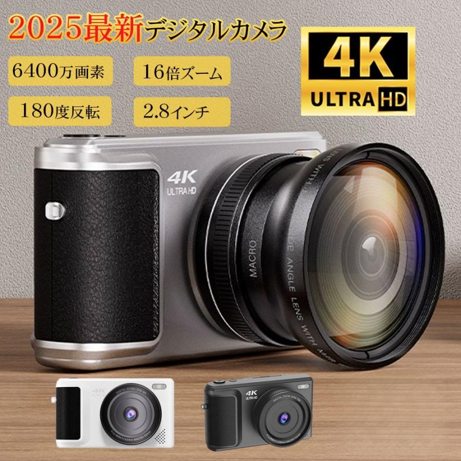 デジカメ デジタルカメラ 4K 6400万画素 動画撮影 2.8インチ 16倍ズーム 180度回転可能 コンパクト ビデオカメラ 自撮り Vlogカメラ 軽量 卒業修学旅行 初心者