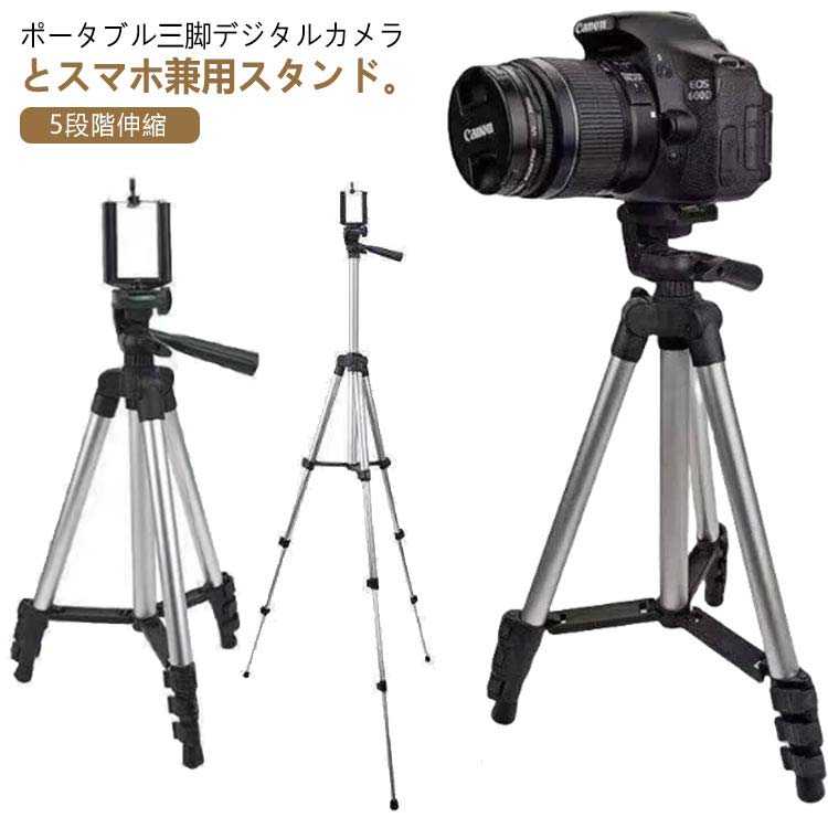 ■三脚 カメラ用 スマホ三脚 アルミ製 5段階伸縮 360度回転 3WAY雲台 デジタル一眼レフ ビデオカメラ デジカメ 折りたたみ 伸縮 Bluetooth