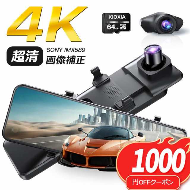 ■ドライブレコーダー ミラー型 前後 2カメラ 4K画質王 32GB高速メモリカード付属 GPS追跡 UHD 800万画素 SONYセンサー WDR タッチパネル式