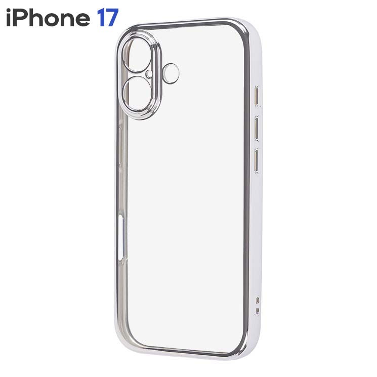 ■iPhone17 ケース クリア シルバー メタリック フレーム 透明 衝撃吸収 シンプル 無地 カメラ 保護 スマホ カバー ソフト TPU iPhone 2025