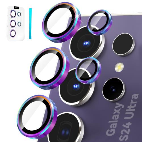 Cloud Valley [3+2] Samsung Galaxy S24 Ultra 用 カメラ レンズ保護フィルム アルミ合金 9H硬度 傷防止 カメラフィルム HD強化ガラス 夜間撮影モード バックカメラカバー 防塵 耐衝撃 簡単貼付 S24U 6.8 2024対応 - カラフル